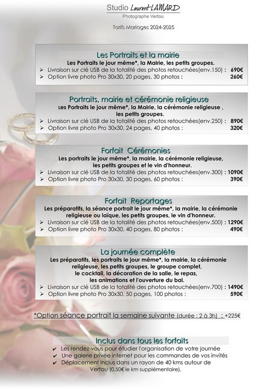 Tarifs Mariage