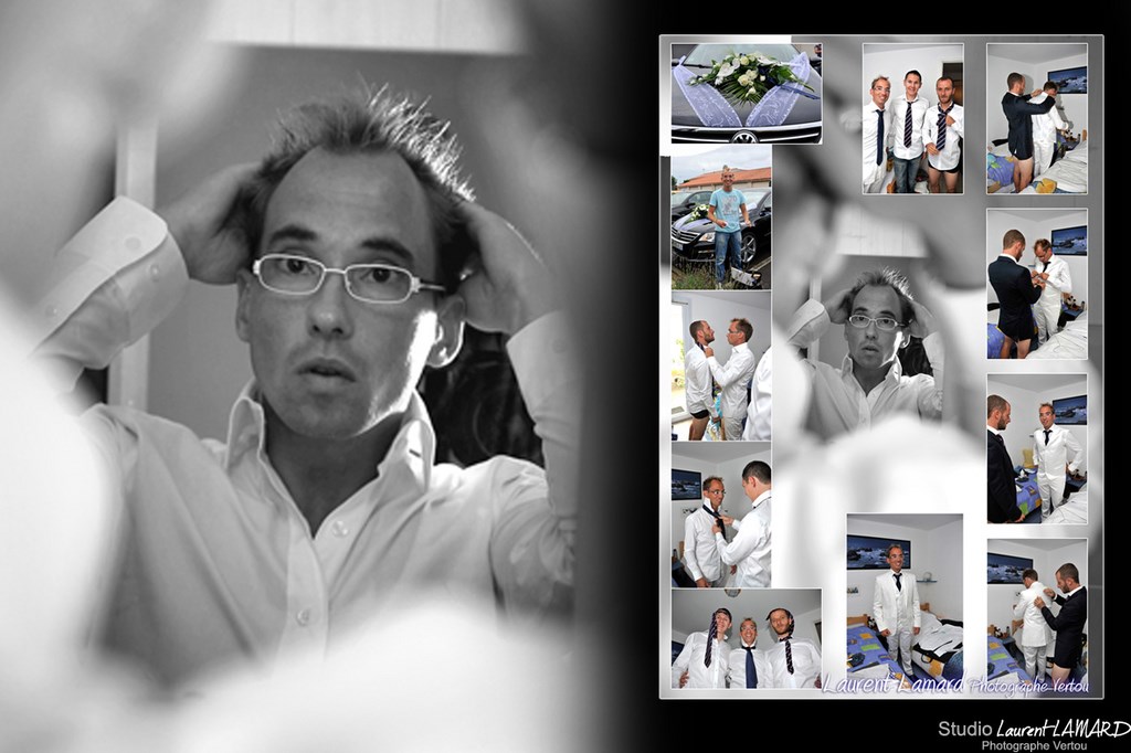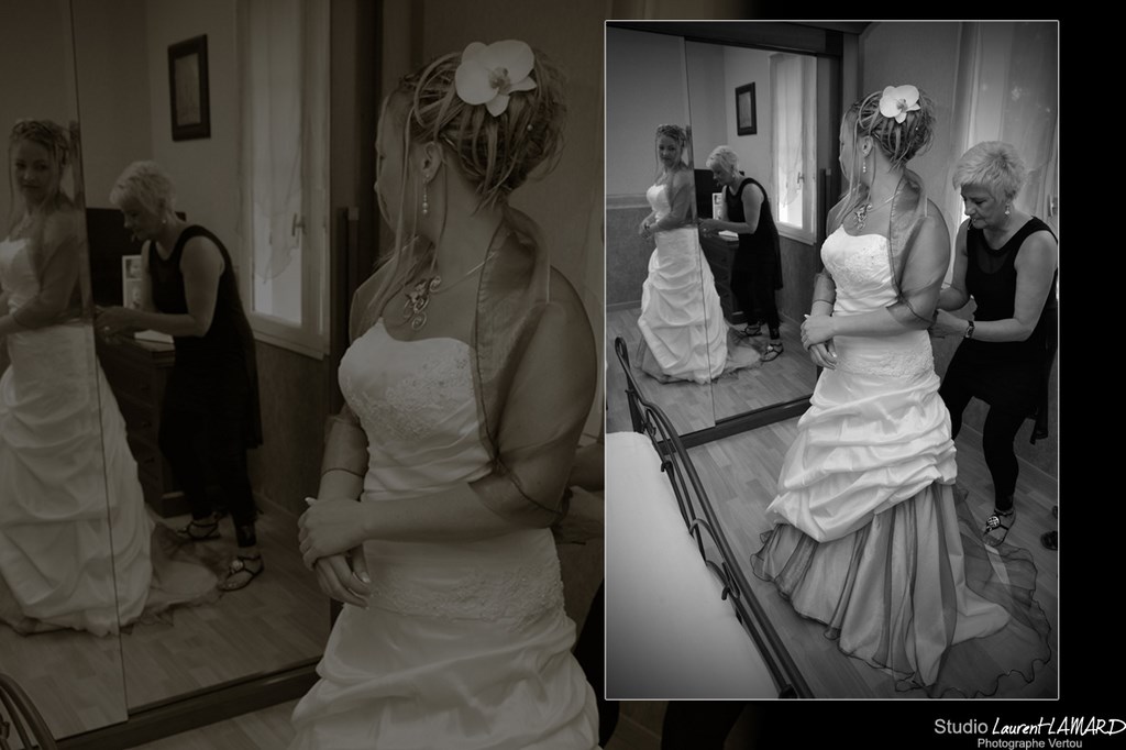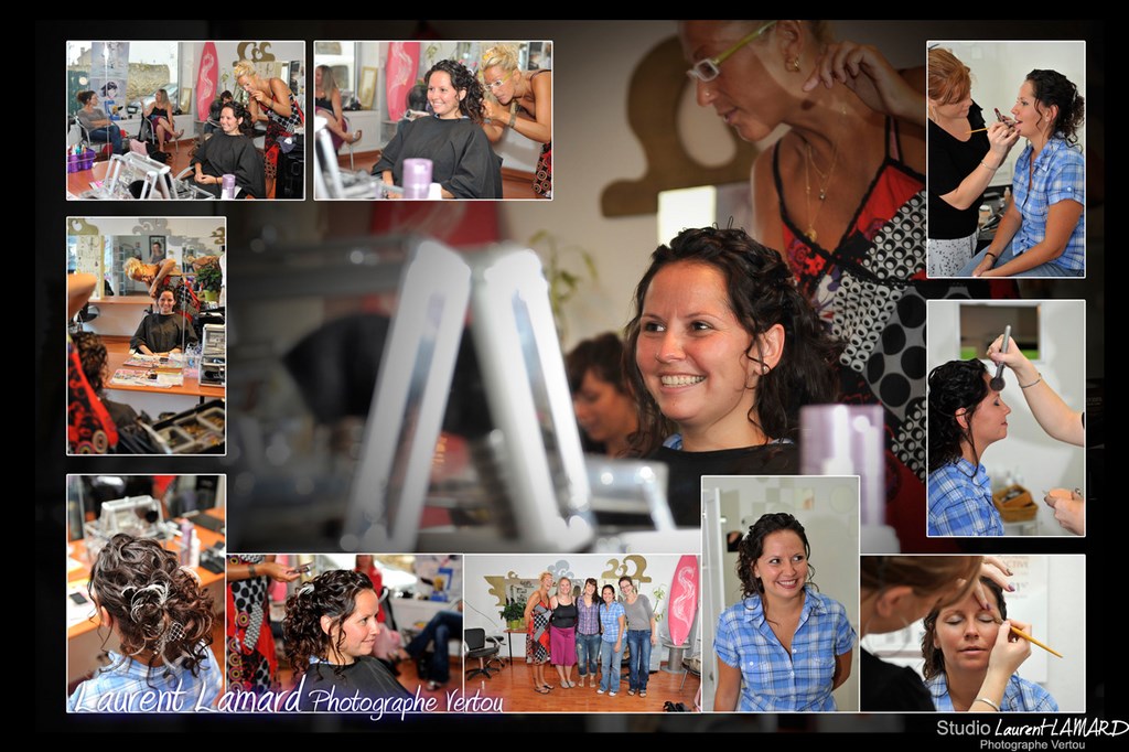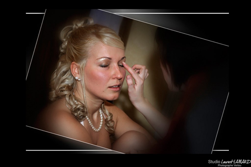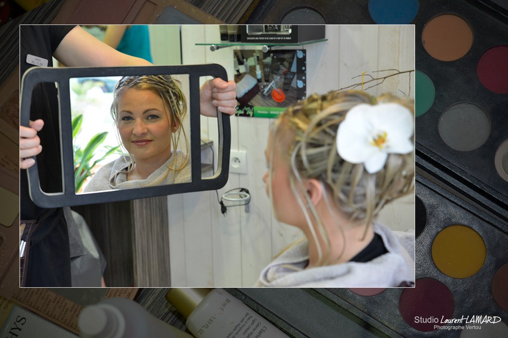 Photographies des mariés pendant la préparation du mariage, coiffure, maquillage, habillage...
